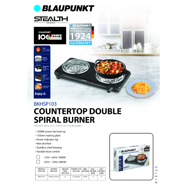 BLAUPUNKT COUNTERTOP DOUBLE SPIRAL BURNER (BKHSP103)