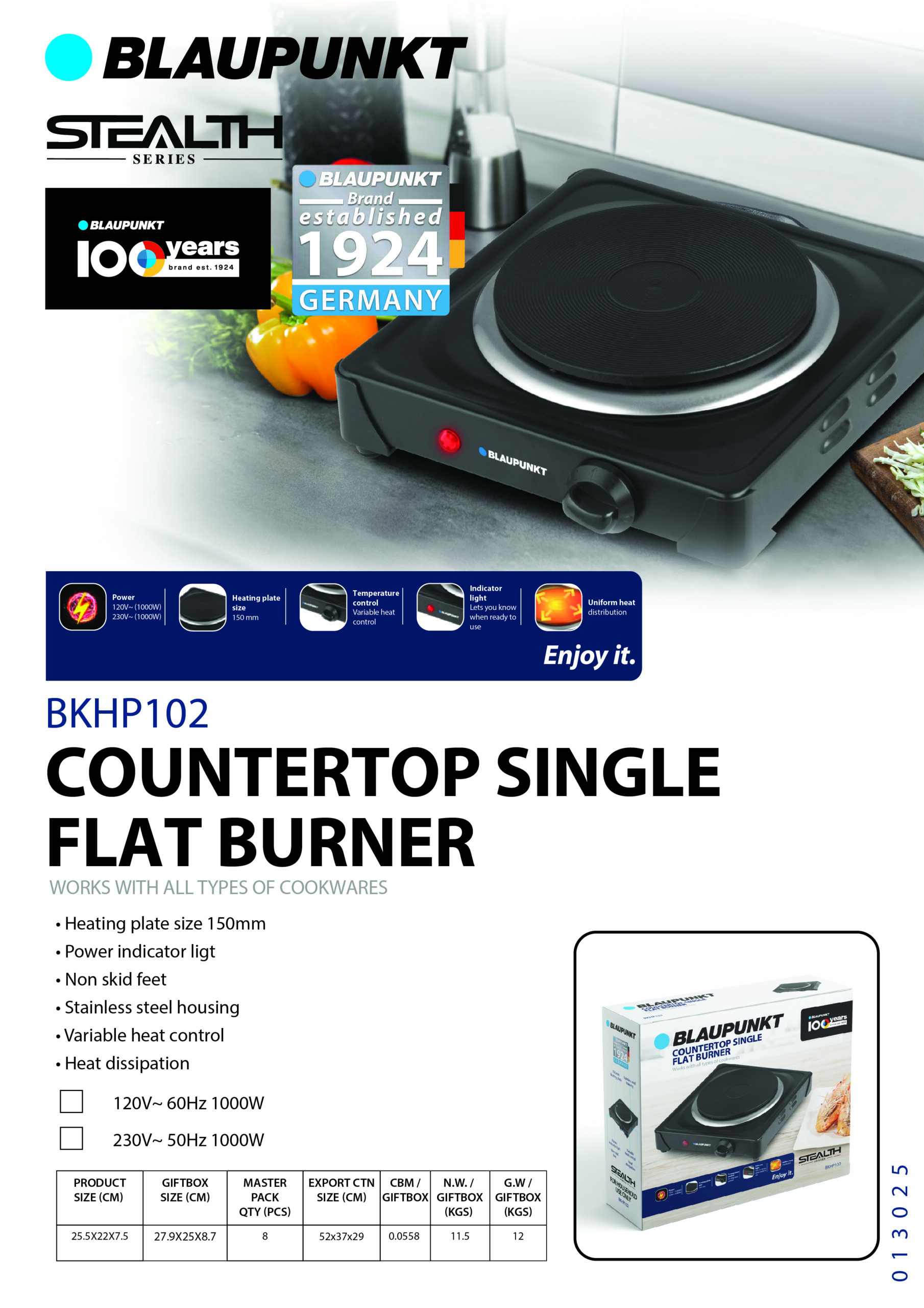 BLAUPUNKT COUNTERTOP SINGLE HOT PLATE (BKHP102)