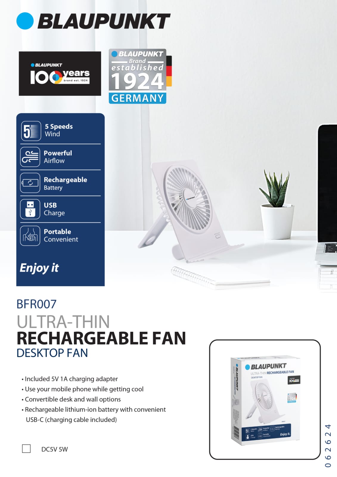 Blaupunkt Desktop Rechargeable Fan (BFR007)