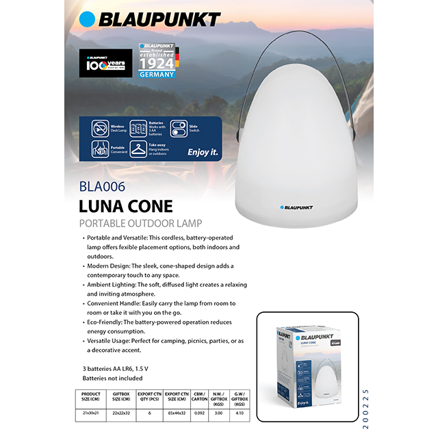 BLAUPUNKT LUNA CONE PORTABLE OUTDOOR LAMP (BLA006)