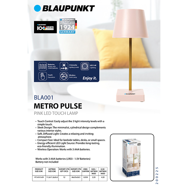 BLAUPUNKT METRO PULSE LED TOUCH LAMP (BLA001)