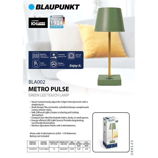 BLAUPUNKT METRO PULSE LED TOUCH LAMP (BLA002)