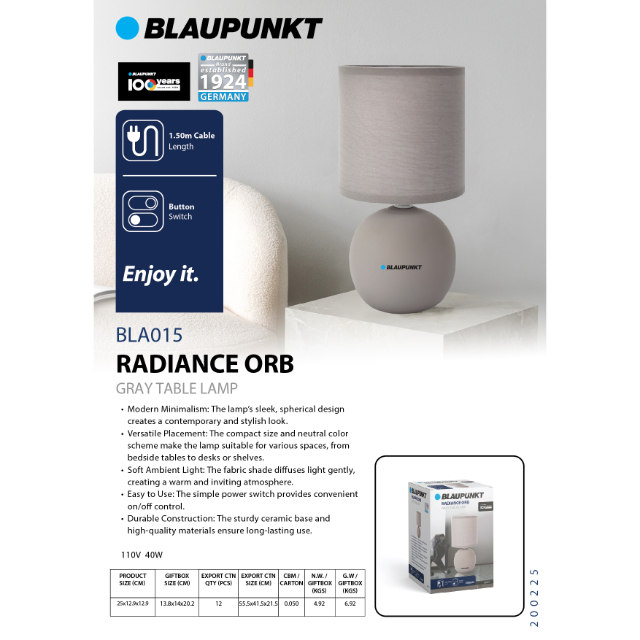 BLAUPUNKT RADIANCE ORB TABLE LAMP (BLA015)