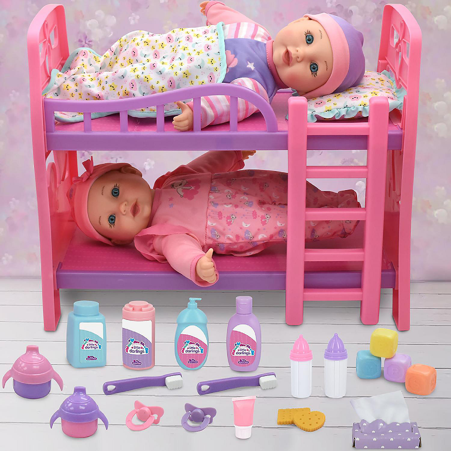 Little Darlings: 12″ Twin Dolls Bedtime Fun Set – 29Pc – Little Darlings 12″ Bedtime Fun Is 29 Piece Set! This Awesome Set